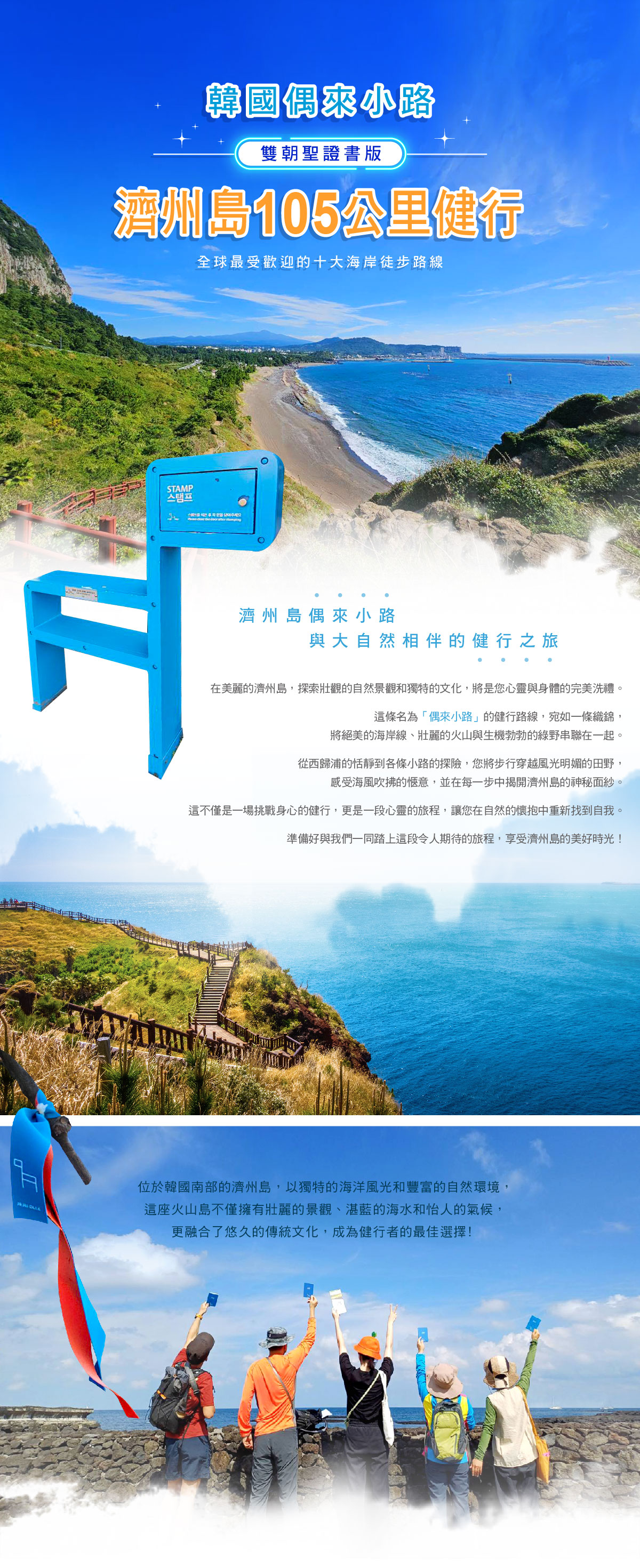 2026/09/01(二) | 桃園國際機場出發 2026【濟州島】雙朝聖證書版~濟州島偶來小路105公里․全球最受歡迎十大海岸徒步路線․山海秘境健行8日(領官方證書)機位 21 候補0 已售0 可售18熱賣中 |