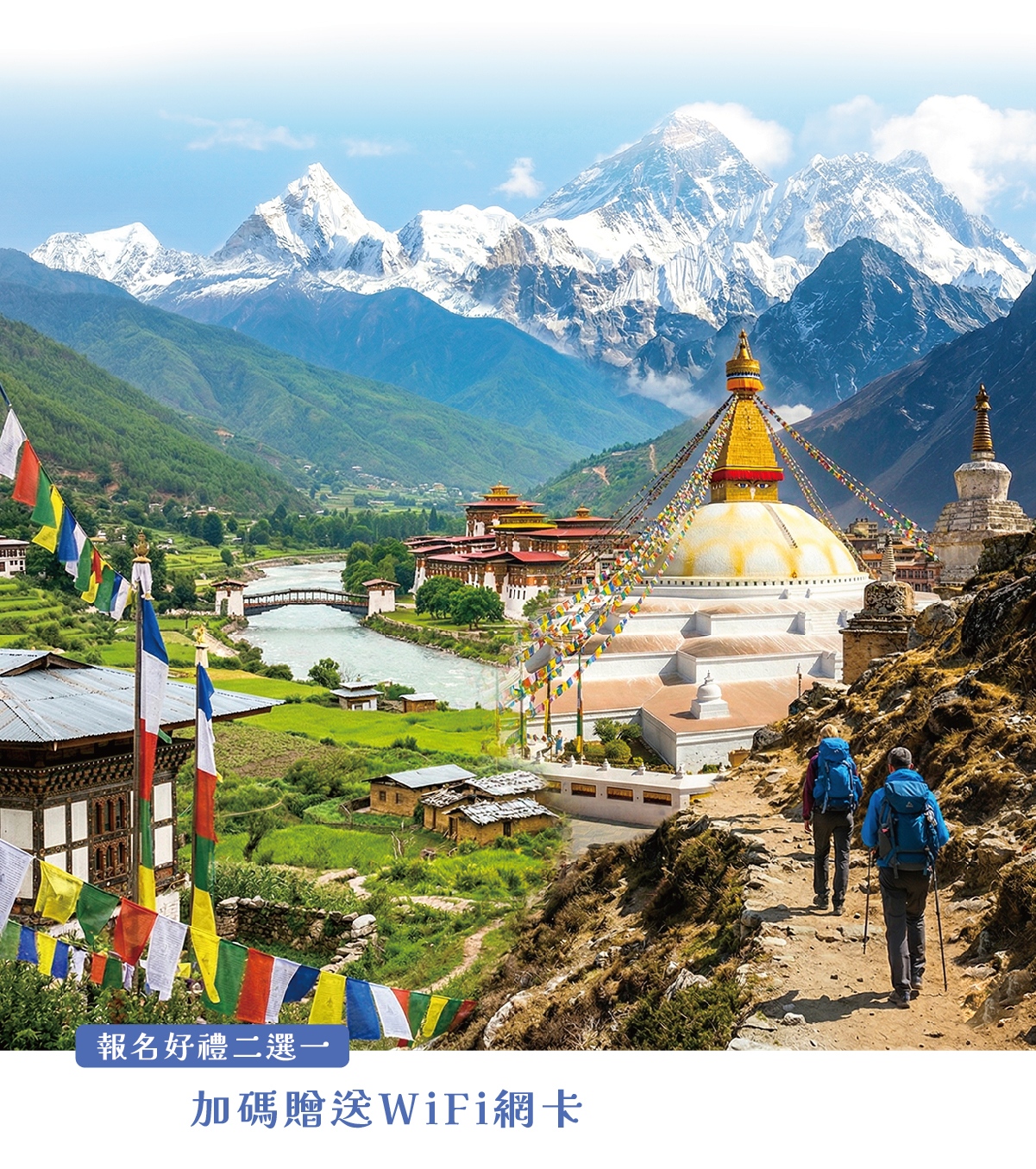 ※凡報名行程出團者,即貼心贈送每位旅客不丹+尼泊爾WiFi上網卡一張,讓您拍照傳LINE都不卡。(Wifi網卡於出發當天,於桃園機場由該團領隊直接發送給各團員)