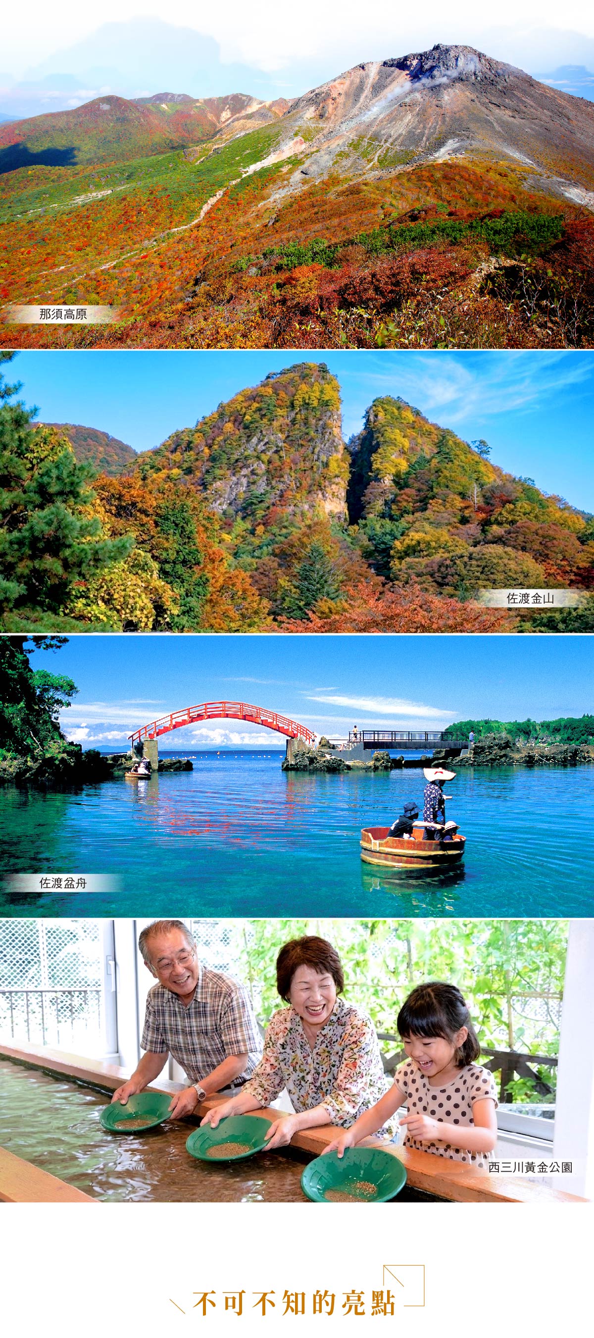 3. 行程所列之旅遊交通費用(遊覽車、新幹線、佐渡島渡輪來回)、纜車、景點門票。