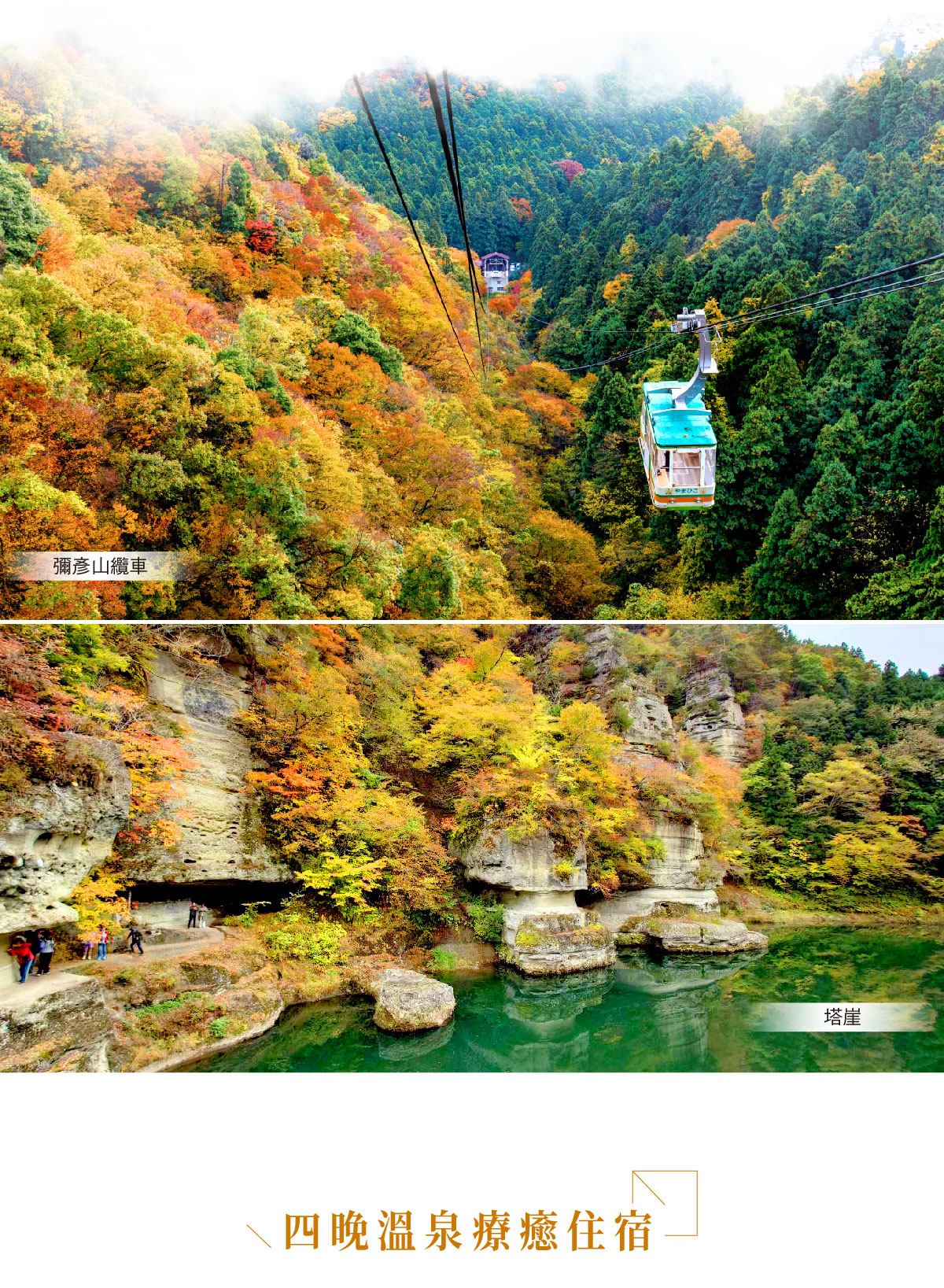 【備註】團費已含每人門票費用:彌彥山纜車¥1350,Panorama Tower¥650,舊齋藤家別邸¥240