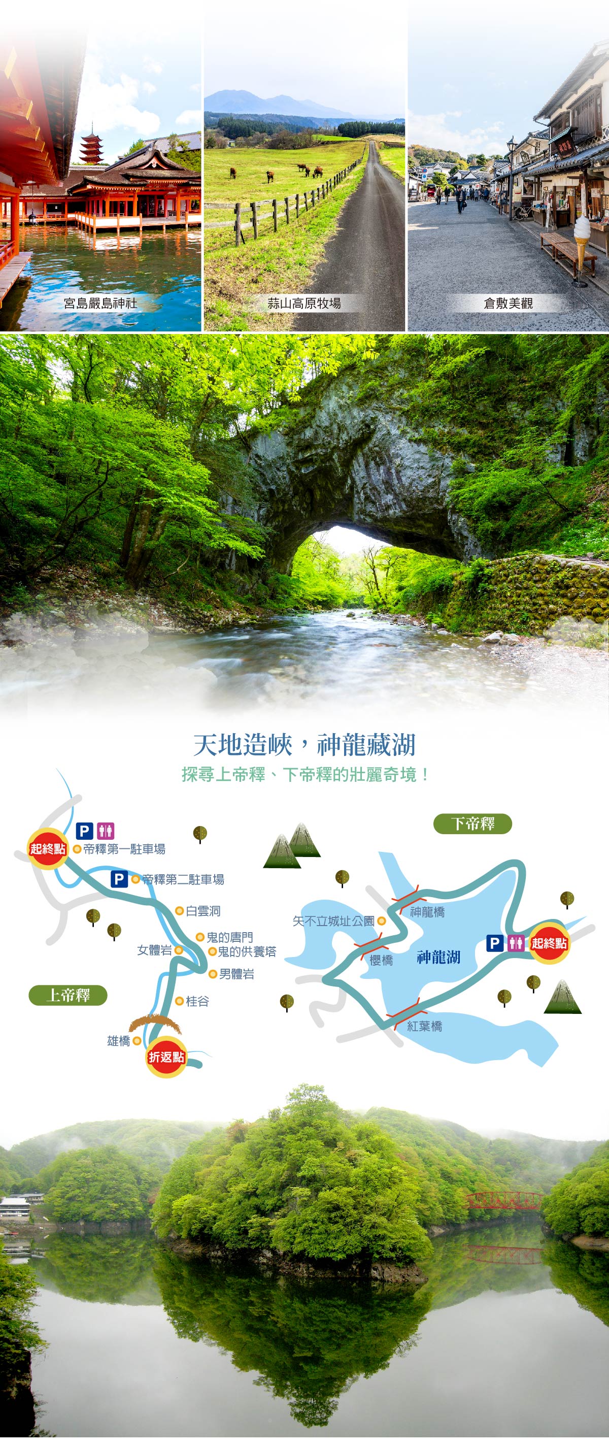 ◆ 獨家安排天然壯觀的 上帝釋峽雄橋 、 下帝釋峽神龍湖 健走。