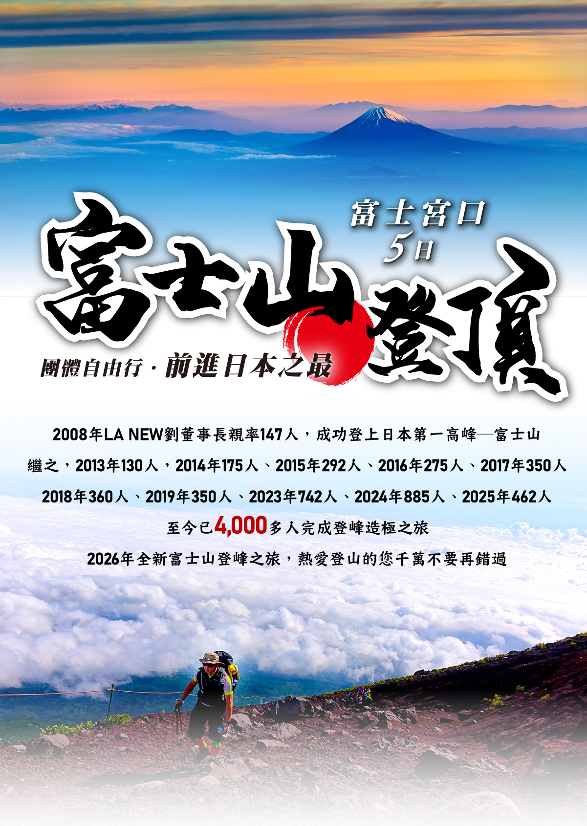 2026探索日本之最~富士山登頂(富士宮口路線)團體自由行5日 (東京進出) |