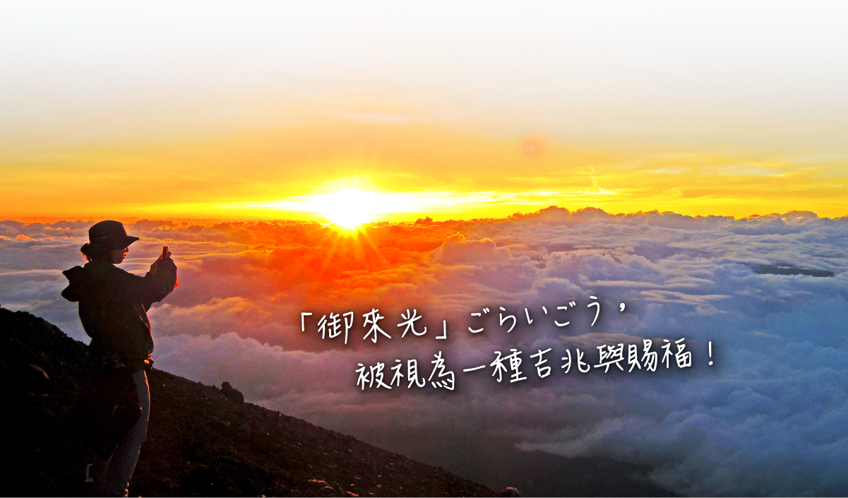 從【八合目】出發沿著登山路線,登上日本第一聖山,一覽「御來光」勝景,在凌晨攻破雲海登上日本富士山最高峰「劍峰」〈3,776公尺〉,欣賞被稱為「御來光」的絕美日出景觀,完成偉大的登頂壯舉。