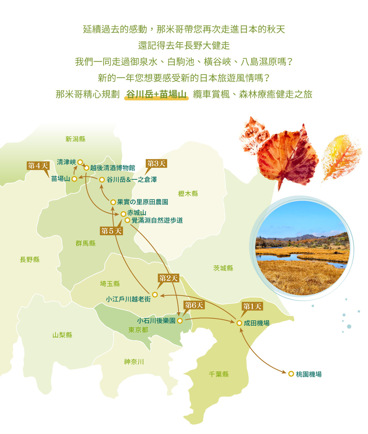 【2026年度日本賞楓大健走】群馬谷川健走‧新潟苗場龍纜車‧清津峽‧越後湯澤溫泉‧採果‧三溫泉6日 |