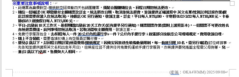 2.機票不可辦理退票、更改航點,請於購票前留意。