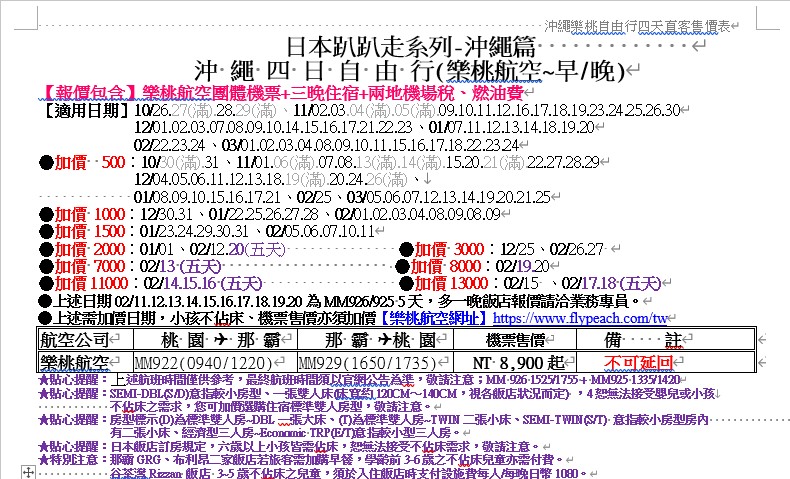 【日本】沖繩4日自由行(樂桃航空) |