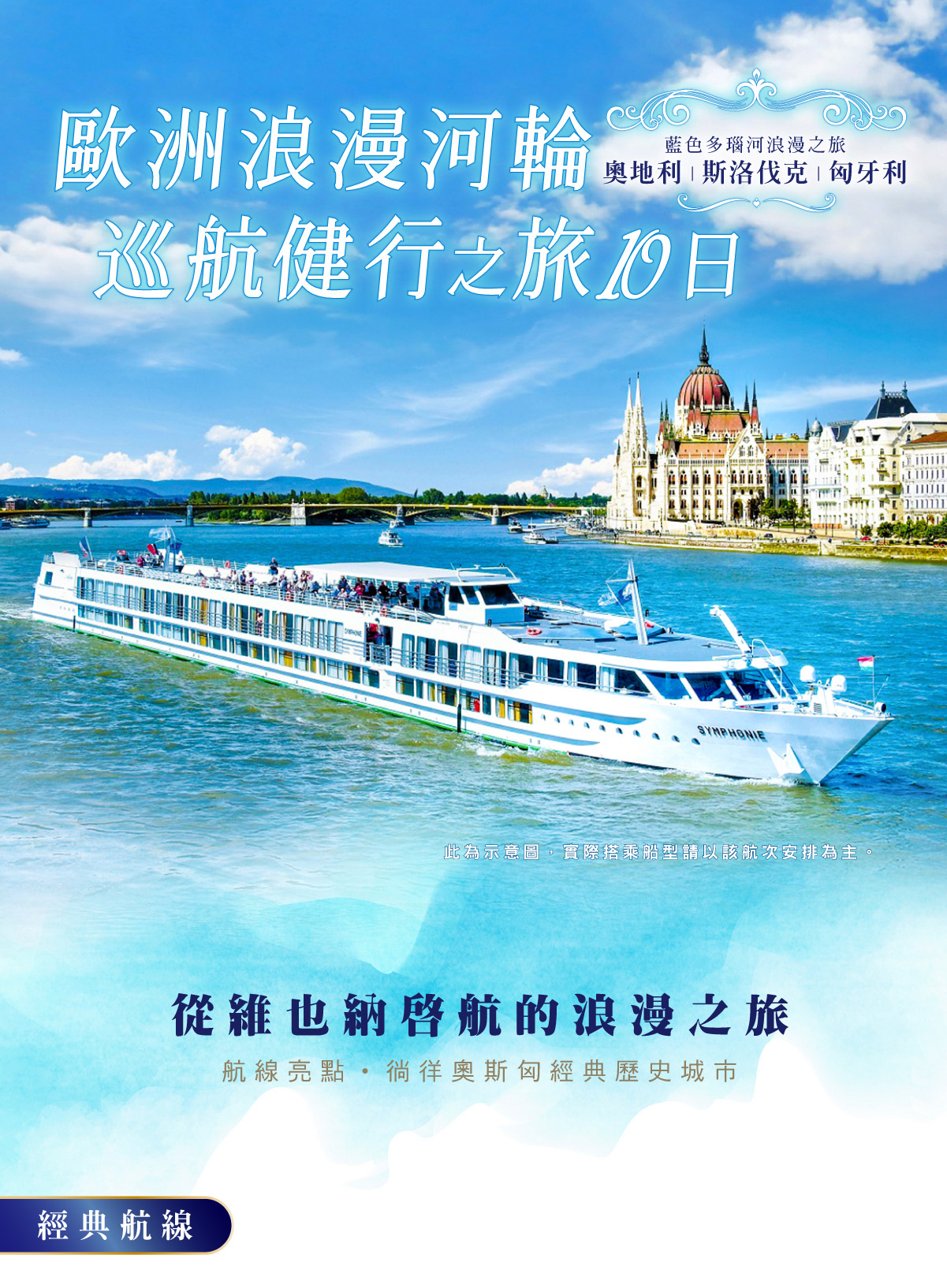 【河輪巡航+徒步健行】歐洲藍色多瑙河古典浪漫之旅〜奧地利․斯洛伐克․匈牙利三國經典10日遊(維也納上船)