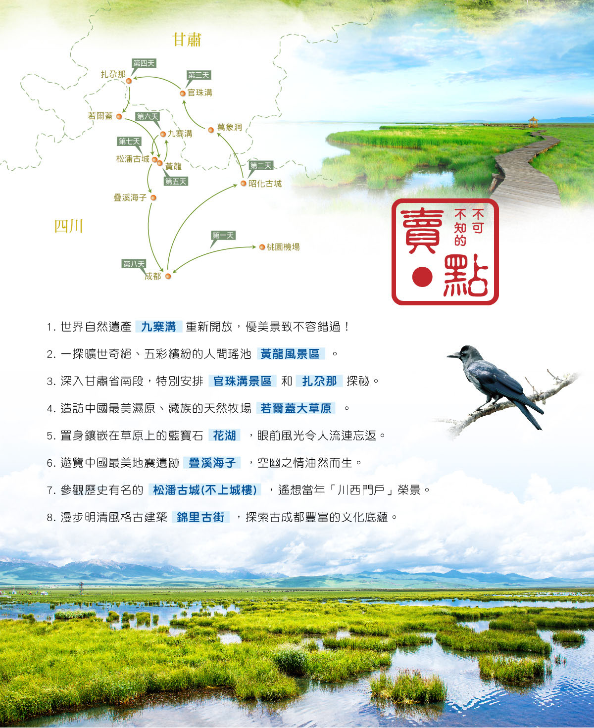 ◎行程中為您收錄四川省境內聯合國教科文組織評定之世界自然遺產【九寨溝】。